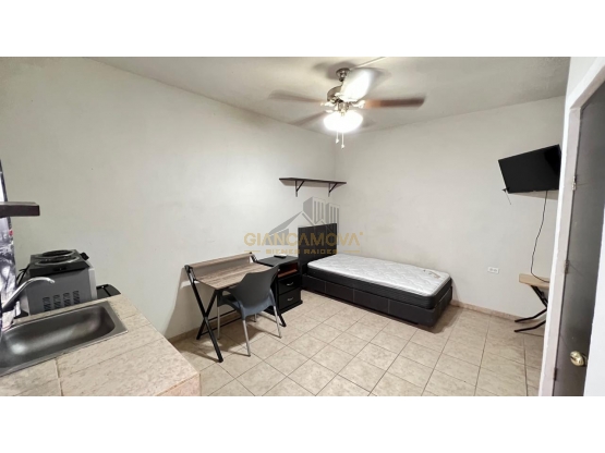 cuenta : con frigobar, microondas, parrilla eléctrica, cama individual, clóset, baño completo en el cuarto y área de cocina.